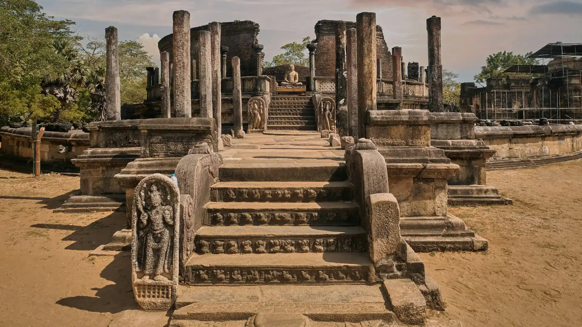 I Anuradhapura, en av de äldsta kontinuerligt bebodda städerna i världen, står ruinerna av forna kloster och palats fortfarande kvar. Här växer även Sri Maha Bodhi, ett heligt träd som enligt legenden har odlats från en kvist av det träd där Buddha nådde upplysning. I Polonnaruwa, som tog över som huvudstad efter Anuradhapura, kan man vandra bland välbevarade tempel, bassänger och statyer, ofta med sällskap av nyfikna makaker och leguaner.